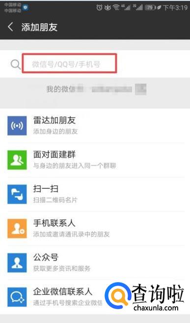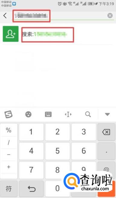 弹出的界面,我们输入对方的手机号码,然后点击搜索;