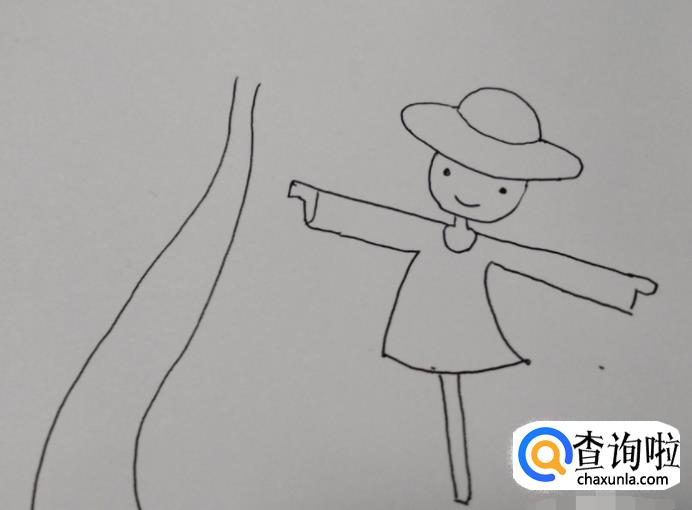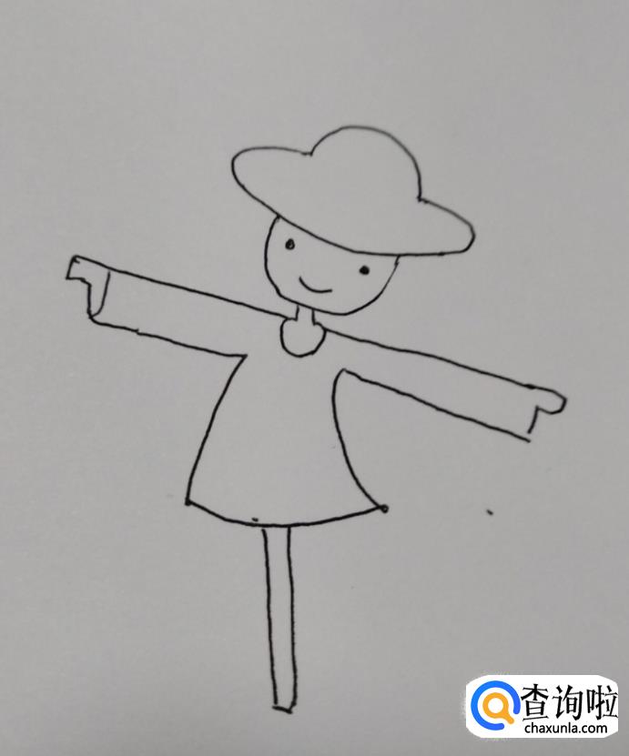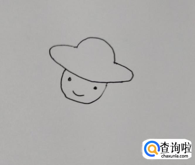 然后画出稻草人的脸,不要忘记还有嘴巴,鼻子,眼睛哦。