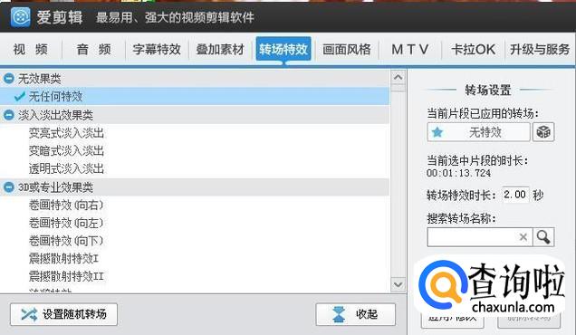 你也可以点击转场特效,给自己的视频增加一些特效效果。