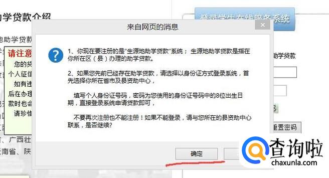 来自网页的消息阅读完成后,点击“确定”进行下一步操作