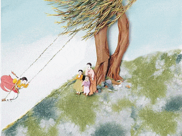 古时候的秋千大多都是利用强壮的树枝,在它的枝干上分别套下两根粗绳,在粗绳的下端系上一块木板。由于制作十分简易,还能给人们带来欢乐,所以它也深受老百姓们,甚至是皇宫里嫔妃公主们的喜爱。