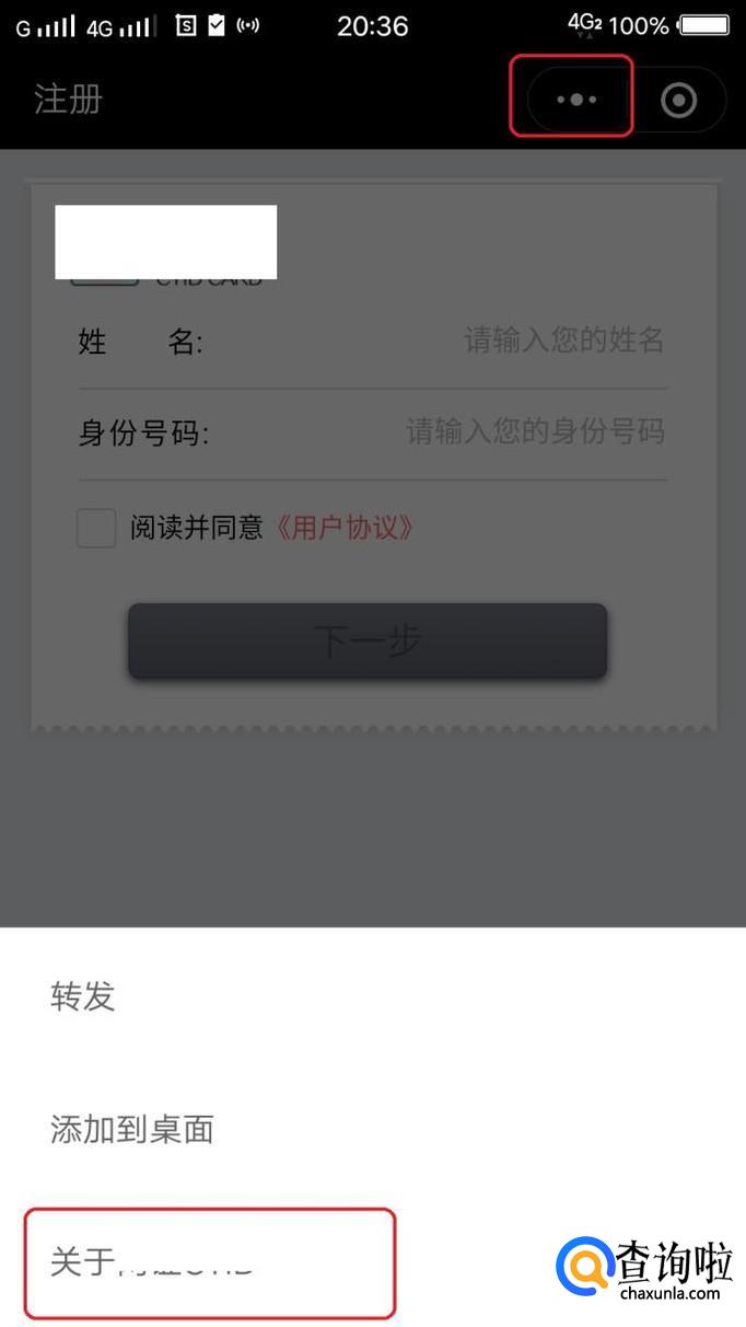 如图所示,点击右上角图标,下方会出现浮动框,我们点击“关于该小程序”。
