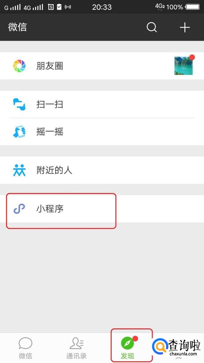 首先,我们打开微信,点击“发现”,“小程序”。