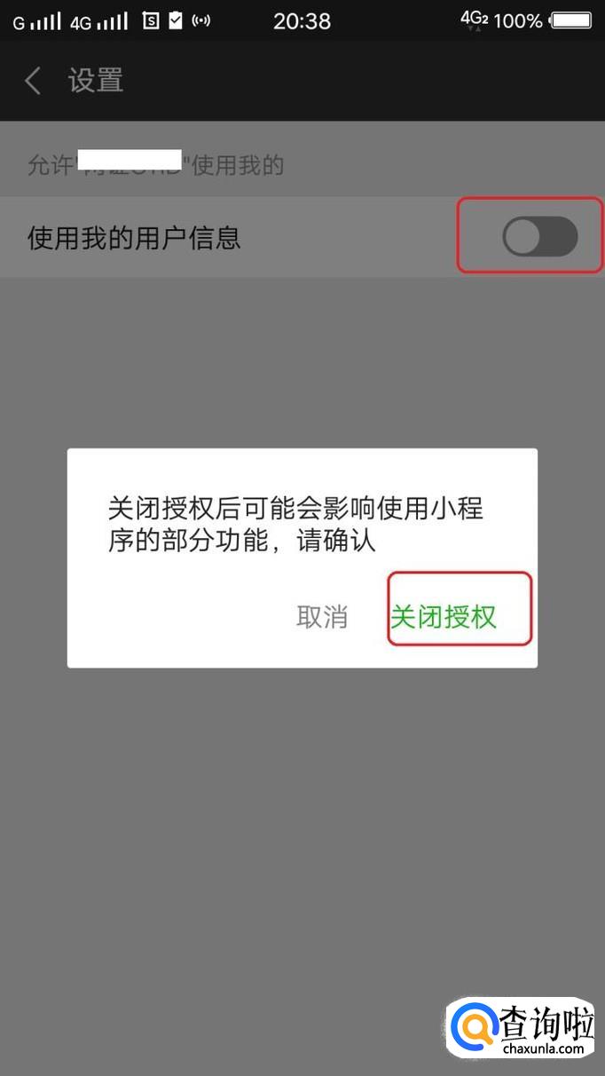 然后,在出现的页面中,关闭“使用我的用户信息”,点击“关闭授权”就可以了。