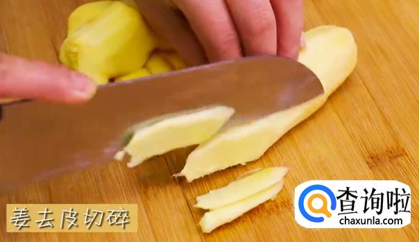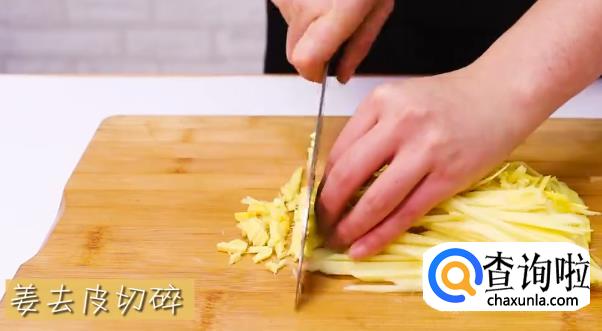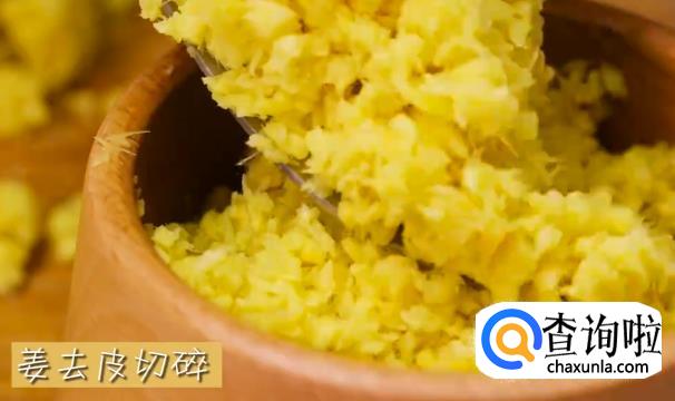 生姜去皮切丝,然后切碎成姜蓉,盛碗待用。