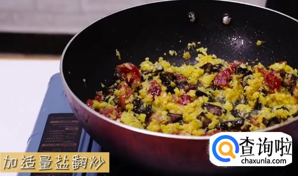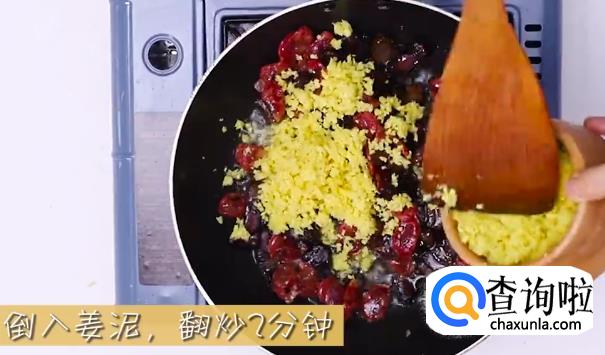 将姜蓉倒入继续翻炒爆香。