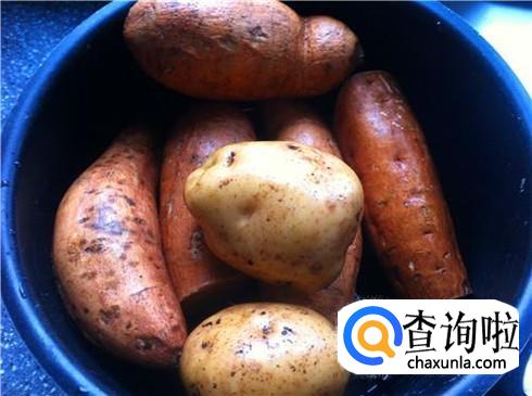 高压锅蒸红薯所用的红薯最好是在阳光下晒过几天的红薯,这样蒸出来的红薯又甜又软,红薯清洗干净。