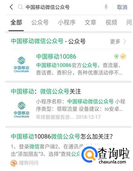 首先先打开我们手机里面的微信软件,然后搜索关注我们当地手机号运营商的微信公众号。