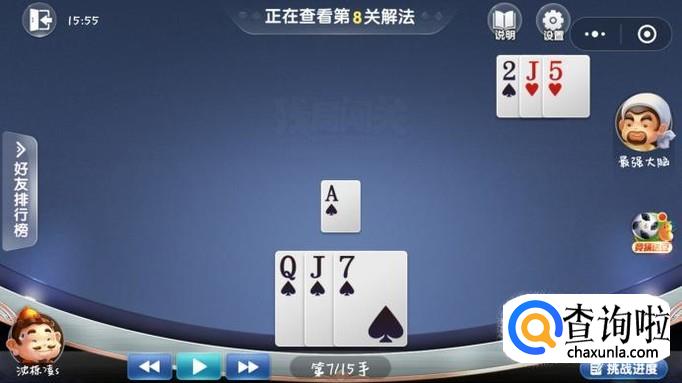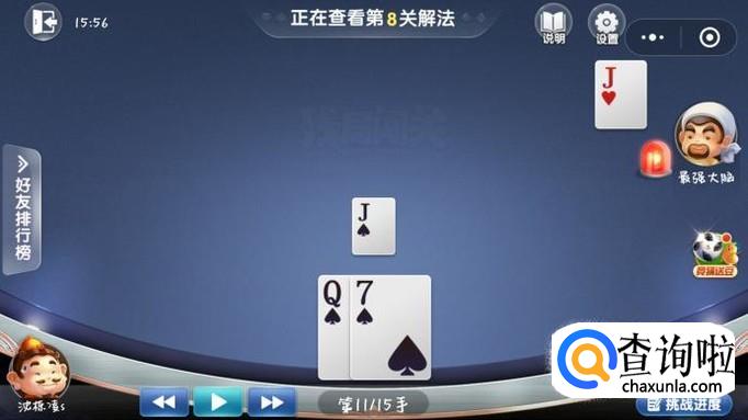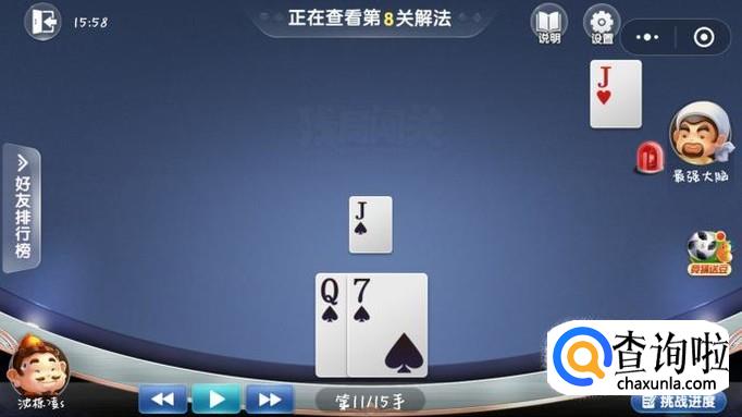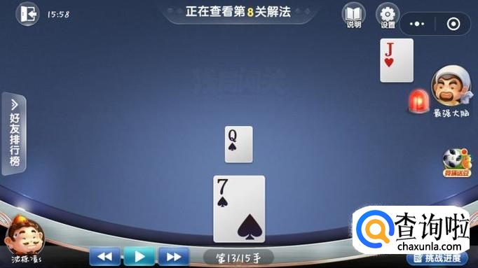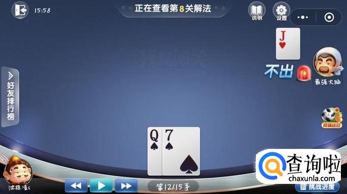 对方剩下的是的“J”,我方打出“Q”压制后剩下一张牌,再 打出“7”即可赢得胜利。