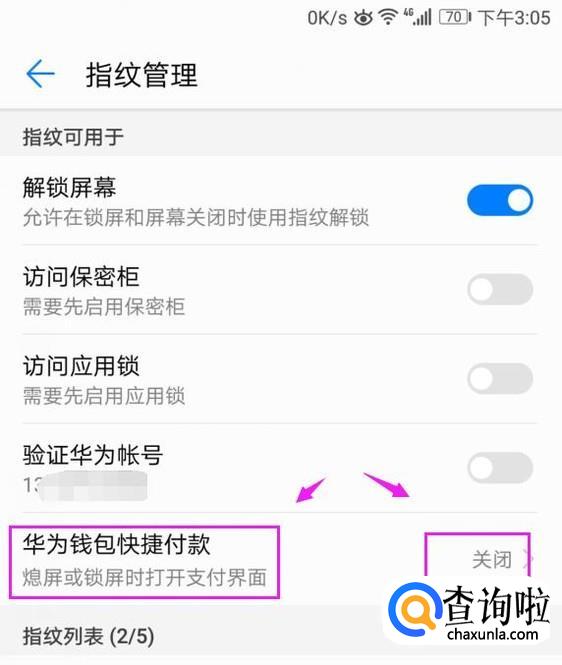 我们可以看到华为钱快捷支付关闭了,我们开启就好了,如图。