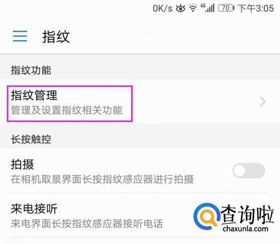 接着点击“指纹”,接着点击“指纹管理”,如图。