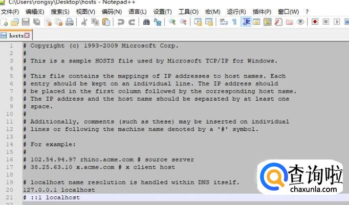 接下来我们就需要将hosts文件拖到桌面打开编辑,如下图所示
