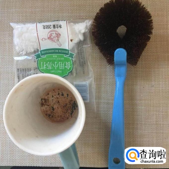 首先我们要准备适量的小苏打,一把毛刷和一个非常脏的杯子,如下图所示。