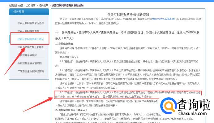 点击之后,再点击【铁路互联网购票身份核验须知】并进入。
