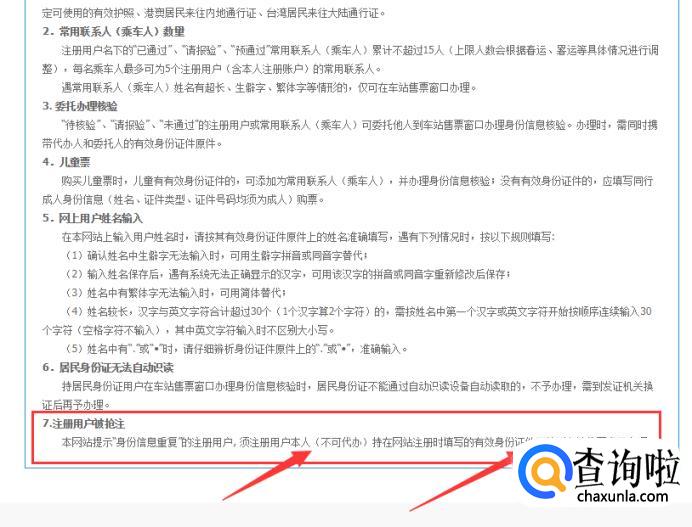 进入后,在页面的最下方即第四项中的第七小条,这里将讲述了遇到身份信息重复的处理方法哦。本人带上身份证到火车票售票窗口进行身份证信息核验即可。