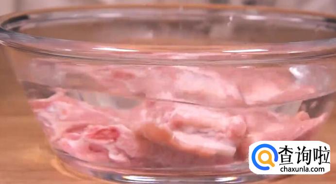 将排骨砍成长段,放入冷水中浸泡一个小时。