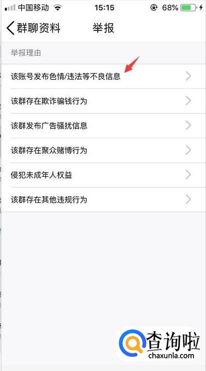 点击举报后系统会让你选择举报的分类,下面小编以举报色情、违法为例子。