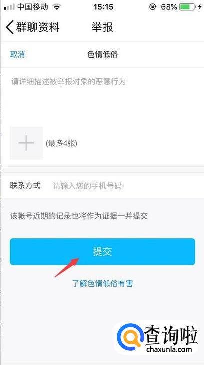 最后我们输入举报的理由和上传相关的截图证据提交上去即可。