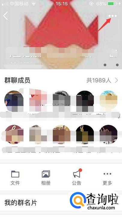 首先我们先打开想要举报的qq群详细资料页面,点击一下右上角的小圆点图标。