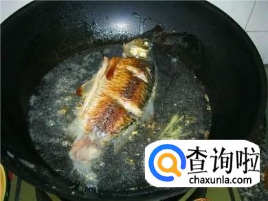 炒锅放油,油热后放入葱花、辣椒、姜片炒出香味后,放入鱼两面煎至金黄,加入适量热水,大火煮开五分钟后,改小火慢炖。