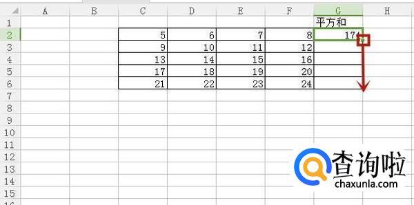 然后点击单元格右下方的加号键并往下拖,如下图所示。