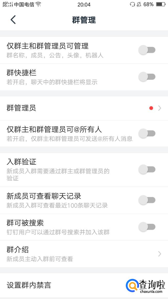 在群管理界面我们可以看到群可被搜索功能默认是关闭的,我们将之打开。