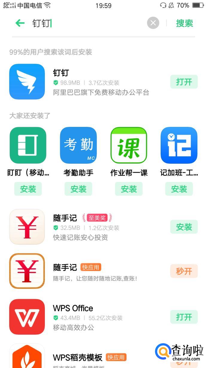 首先,我们要有一个钉钉的软件。在手机的软件商店下载钉钉软件。
