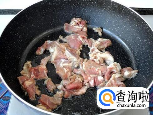 将锅烧热,加油,烧热,然后我们加入备好的鸡肉,煎炒,到其变色时加入辣椒段适量,老姜适量,爆炒