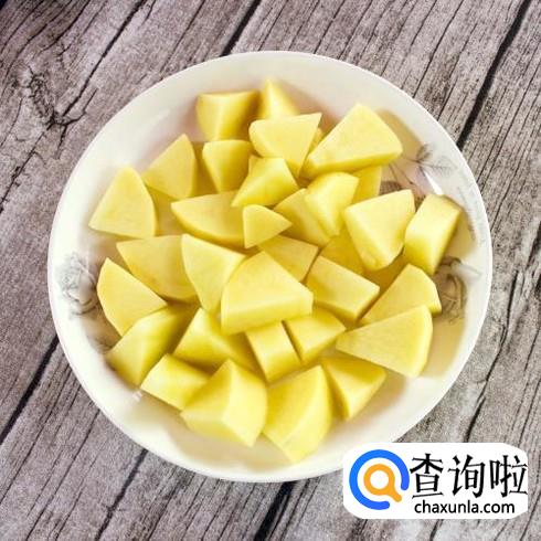 土豆去皮,洗净,切成小块儿,装盘备用