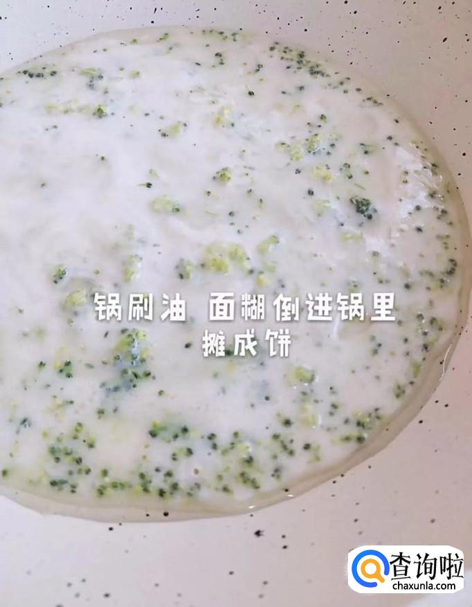 然后锅中刷上油,倒入面糊摊成饼,如下图所示。