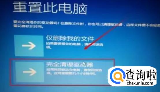 然后我们可以看到这里有2个选择项。第一个是不完全清除,第二个是完全清除。如果有重要文件建议选择第一个选项。这样到时候我们电脑的文件还会存在电脑里面。这里选择的是第二个选项。
