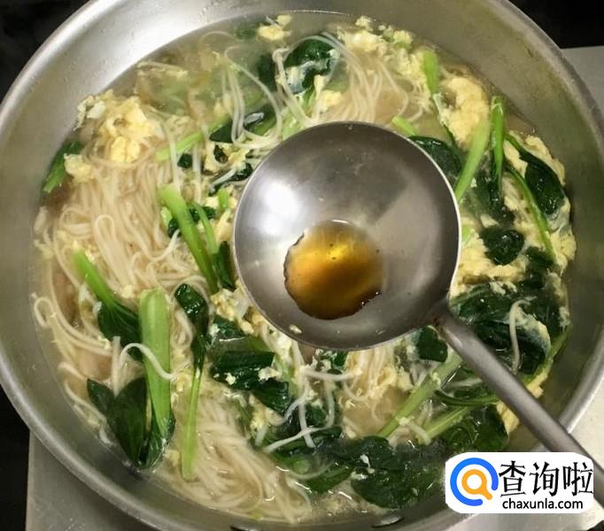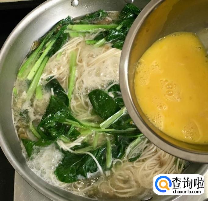 煮沸后加入适量的盐调味儿,根据自己的喜好还可以加入适量的蚝油。下入挂面用筷子轻轻搅拌使之散开