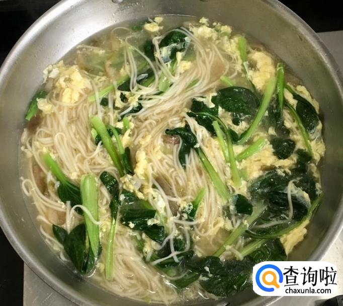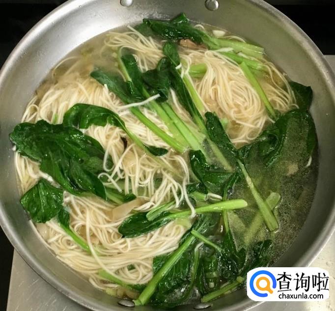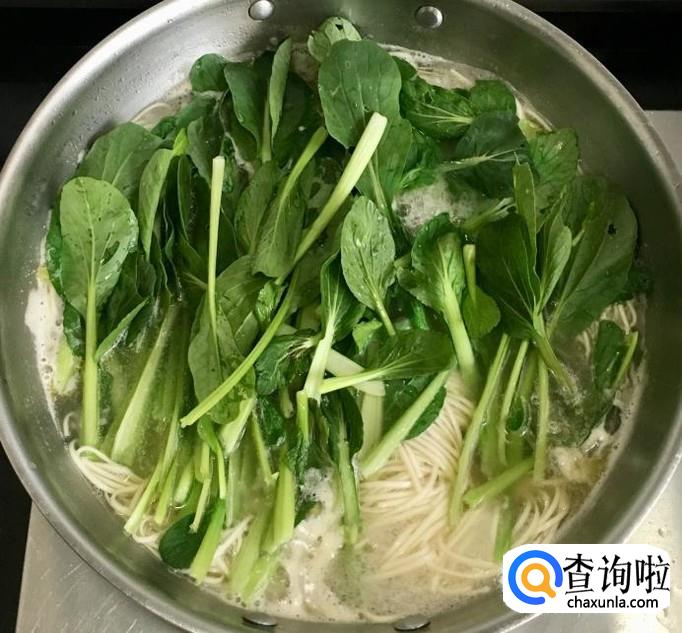 煮至挂面将要成熟时放入小油菜再次轻轻搅拌使之变色