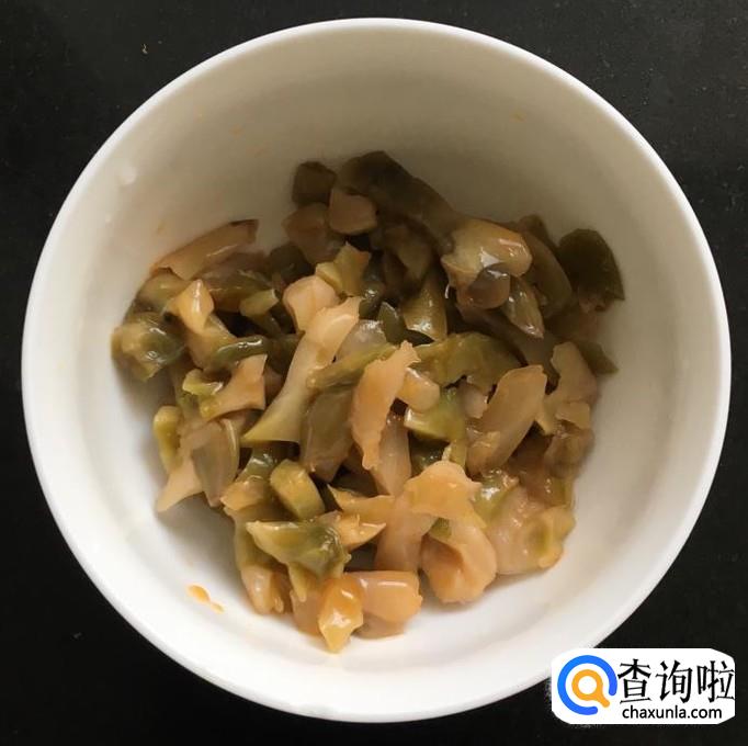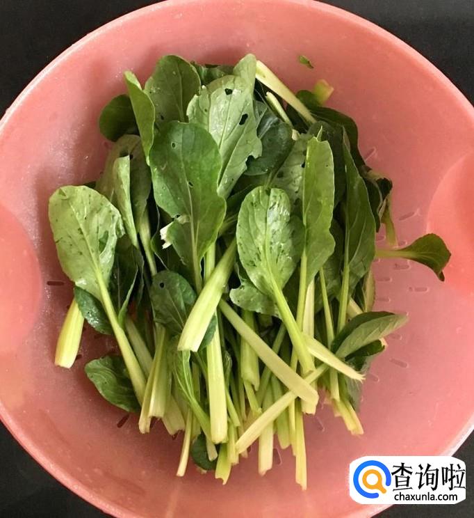 小油菜择去根部和老叶子反复冲洗干净泥沙控干水分备用,榨菜丝一小包倒入碗中备好