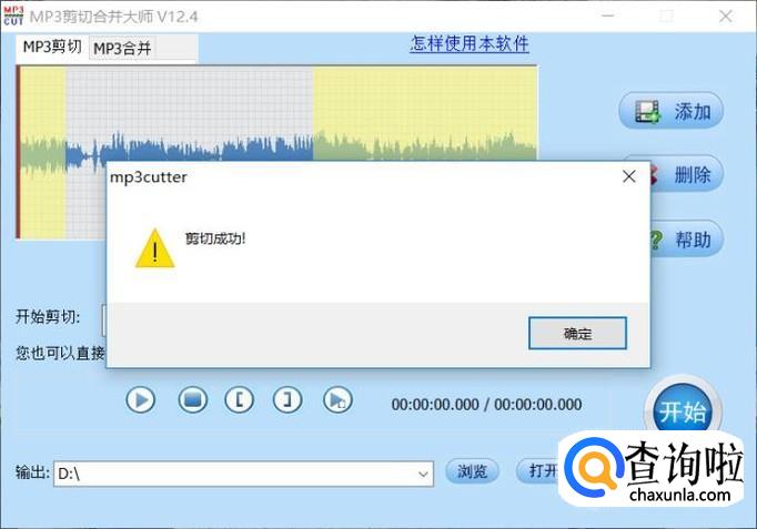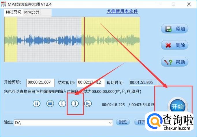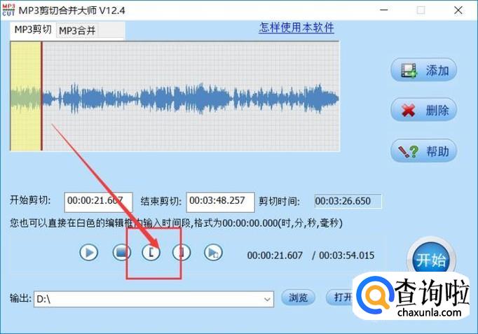 按照同样的办法选择好剪切结束时间之后,点击“结束剪切时间”按钮,选定好剪切时间段之后,点击“开始”按钮。
