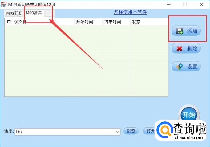 使用MP3合并功能时,我们也还是需要先点击“添加文件”按钮,选择要进行合并的歌曲文件。