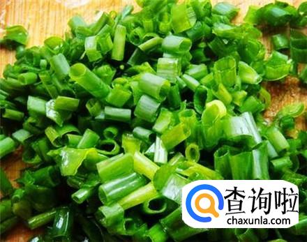 葱叶摘下来,那些发黄的葱叶不要,清洗干净,然后控干水分,一定要控干水分哦。