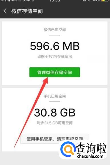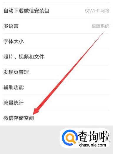 进入之后,点击“微信存储空间”,进入下一页面,如图所示。