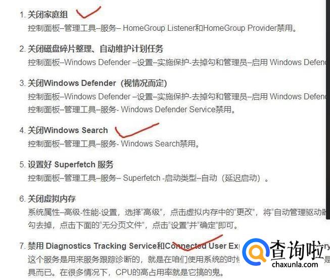 点击设置,家庭与安全中心,关闭家庭组这个无关的服务,windows search也关闭。