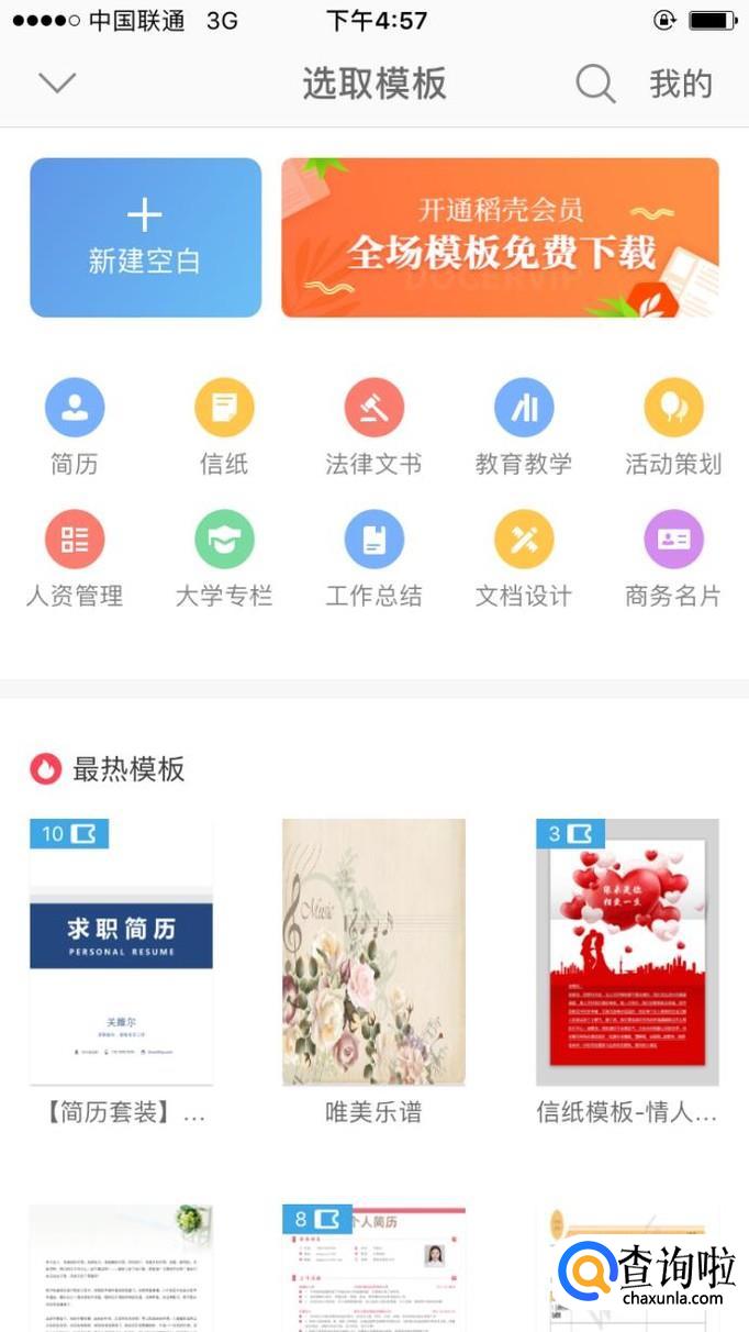 选择“新建空白”,不要点击其他的模版,统计字数的话,这个就足够了