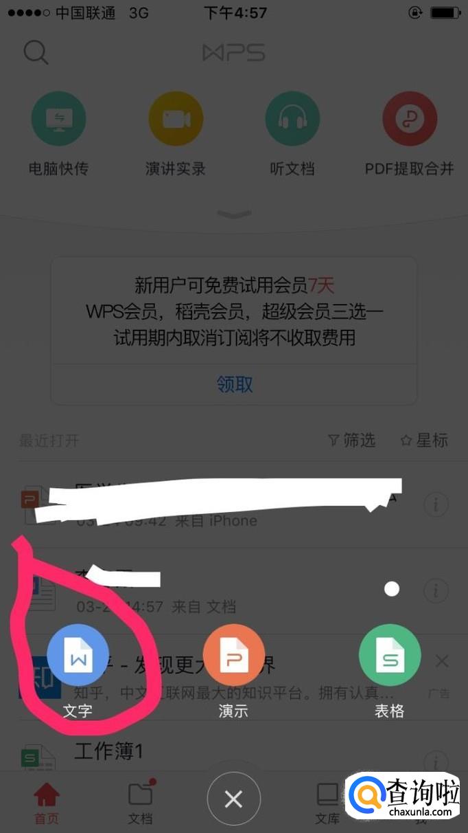 然后打开WPS新建空白文档,注意是word文档,不要建成PPT或者Excel