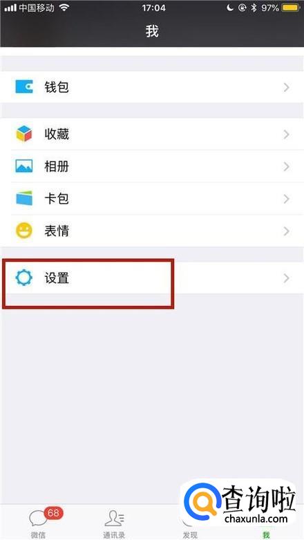 首先点击微信中的设置,如下图所示。