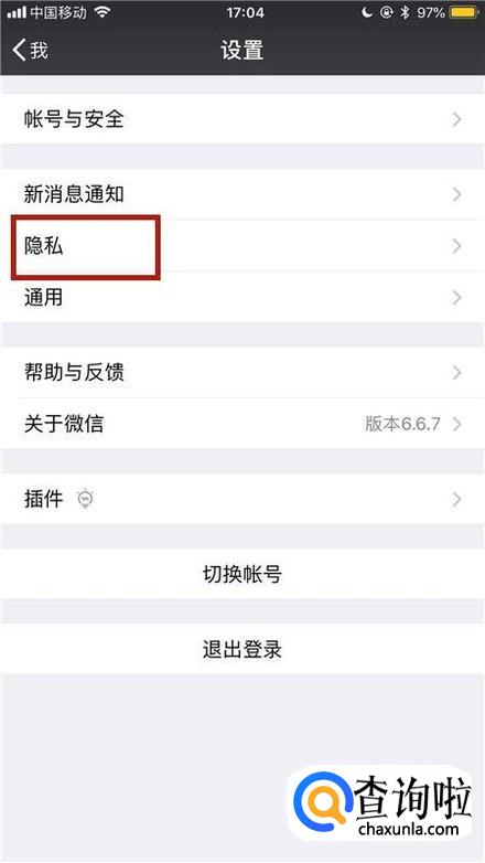 然后点击隐私,如下图所示。