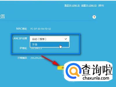 然后将lan口设置为手动并点击保存。