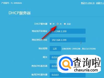 然后将DHCP服务器关闭。