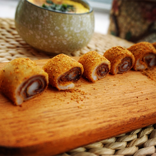 豆面卷子起源于东北地区,在北京称驴打滚,是满洲(东北地区,铁岭等地)以及北京小吃中的古老品种之一(满洲地区一般叫豆面卷子),它的原料是用黄米面加水蒸熟,和面时稍多加水和软些。源于满洲,缘起于承德,盛行于北京。