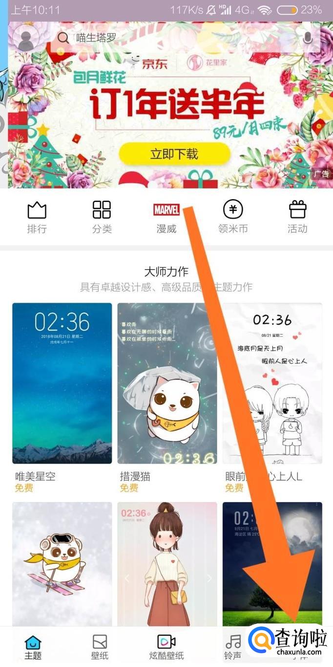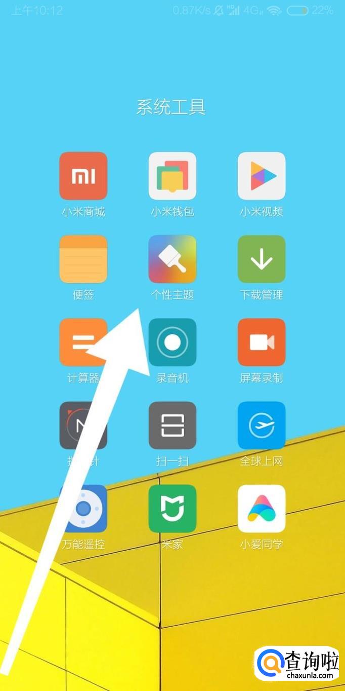 首先找到小米手机的“个性主题”应用程序,点击进入。