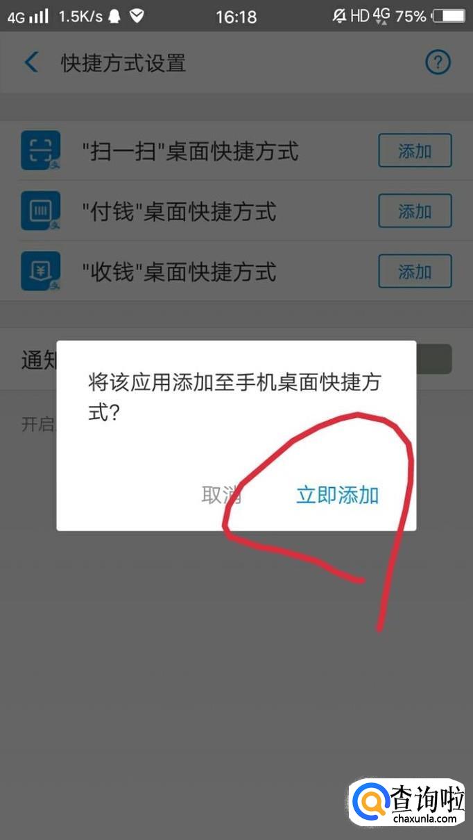 最后点击立即添加,这样就可以在桌面上看到扫一扫。