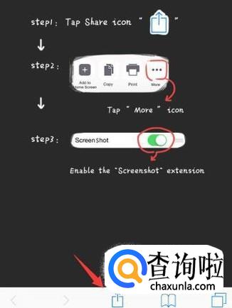 接着滑动下面一栏的选项,然后找到更多, 打开来,然后选择将screeshot按钮直接打开。