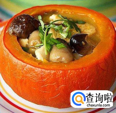 南瓜杂菌盅:先把南瓜切成下图这样的形状,然后入锅蒸至能用筷子穿透即可关火;把各种蘑菇洗好后加入调料炒炖一会,然后出锅放入南瓜盅里面就可享用了。